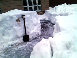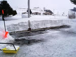 雪山が大きくて設置不可能とおもわれた場所もスコップ片手に除雪作業