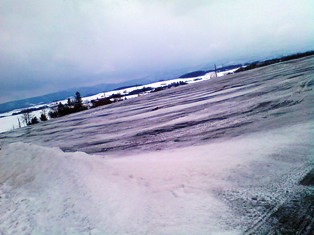 美瑛のいたるところの畑で融雪剤をまいている風景が見られるようになりました。