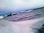 雪の上が黒ずんでいるのが融雪剤です。ちょっとわかりづらいかな。