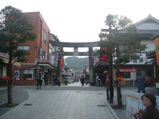境内から鳥居をぬけると おみやげ屋がたくさんならんでいました。