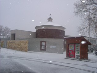 美術館前の道路は真っ白です。