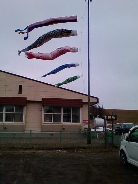 美術館から200メートルほど離れた場所に保育所があるのですが、そばを車で走ってみると「こいのぼり」が空を泳いでいました。