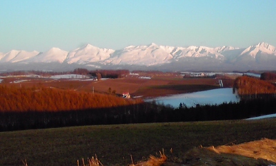 美瑛へ来て10年目を迎えた今でも、雪をかぶった十勝岳には会うたびに立ち止まってしまう。昨日、白金温泉に向かう途中。やはり車を止めて一枚。